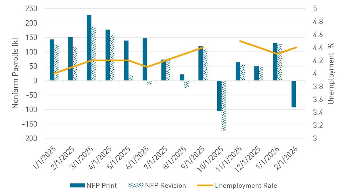 - February nonfarm payroll print misses significantly to the downside