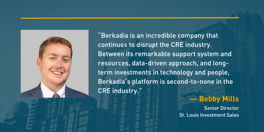 “The multifamily brokerage world has increasingly become hyper-competitive in St. Louis and the overall Midwest Region. While some of our competitors have elected to take a transactional approach without thinking about the long game, this is something Berkadia refuses to do, period. Our mindset is to think forward, which is one of many reasons why Berkadia St. Louis Investment Sales continues to be the market leading multifamily sales team in St. Louis.”