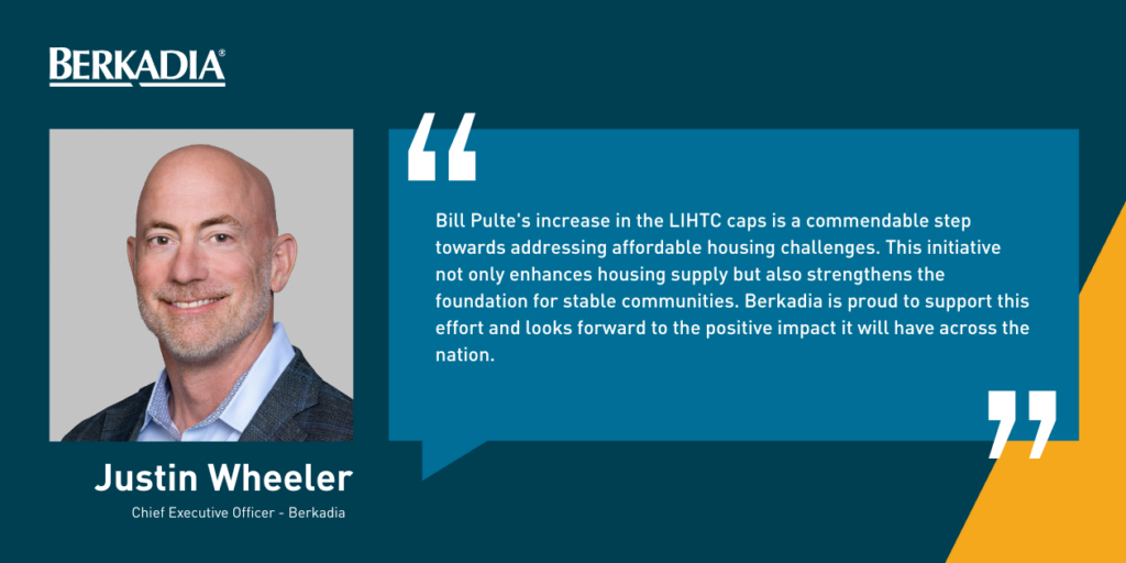 “Director Pulte’s increase in the LIHTC caps is a commendable step towards addressing affordable housing challenges,” said Justin Wheeler, CEO at Berkadia. “This initiative not only enhances housing supply but also strengthens the foundation for stable communities. Berkadia is proud to support this effort and looks forward to the positive impact it will have across the nation.”