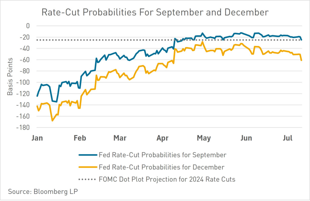 - Market expectations for a September rate cut continue to climb