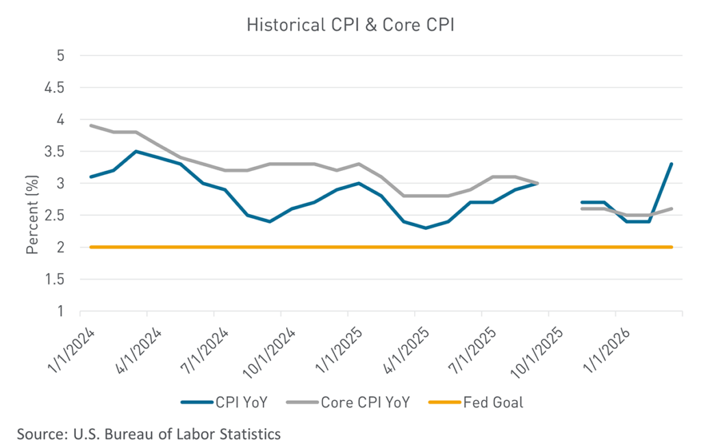 Last week’s March Consumer Price Index (CPI) report exemplified the extreme impact an oil shock can have on inflation. Headline consumer prices surged 0.9% month-over-month, the largest monthly increase since 2022, pushing the year-over-year rate to 3.3%. Nearly three-quarters of the monthly rise came from gasoline prices alone. Core inflation, which removes volatile food and energy price measures, was more measured, rising just 0.2%. The inflation shock was driven primarily by energy rather than broad-based overheating demand. Services inflation also remained relatively tame, giving the Fed some room to look through the move—provided energy prices continue normalizing. At the same time, real consumer spending in February rose just 0.1%, while real disposable income declined 0.5%, signaling households were already under pressure before the March gasoline spike fully hit wallets.